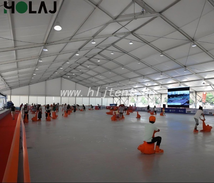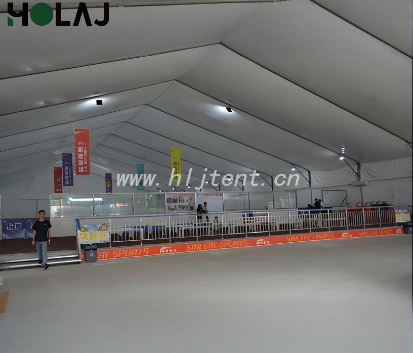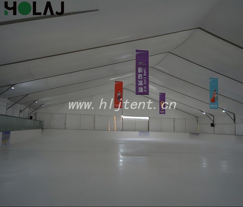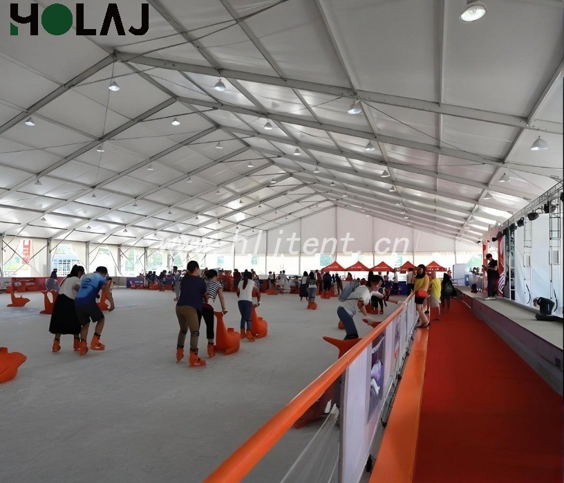 篷房内需维持冰面温度-5℃~-8℃、环境温度≤15℃,通过双层隔热篷布与空调系统实现精准控温;透光设计减少日间照明能耗,符合绿色建筑标准。